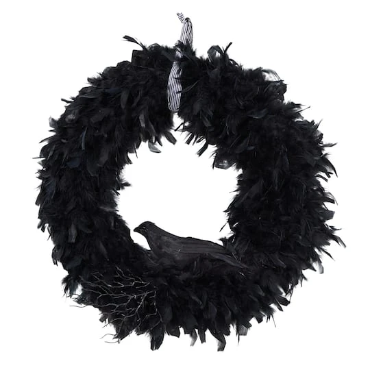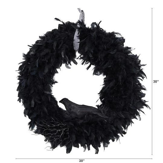 Have a dark Halloween this season with the Feathered Halloween Wreath with Decorative Raven. If you’re looking to display mystery and intrigue, or just a fan of the color black, hang this raven wreath proudly to scare the goblins and ghosts. This will be a crowd-pleaser and conversation starter. With a diameter of 30″, this wreath can be hung on any door or wall. Get spooky every Halloween season. Artificial wreaths are manufactured using synthetic materials, such as polyester material or plastic, and are well designed and constructed to be life-like in appearance. This item will need to be re-shaped when removed from the secure box to allow it to reach its fullest size. Your wreath will look beautiful for years to come; simply wipe clean with a soft dry cloth when needed.