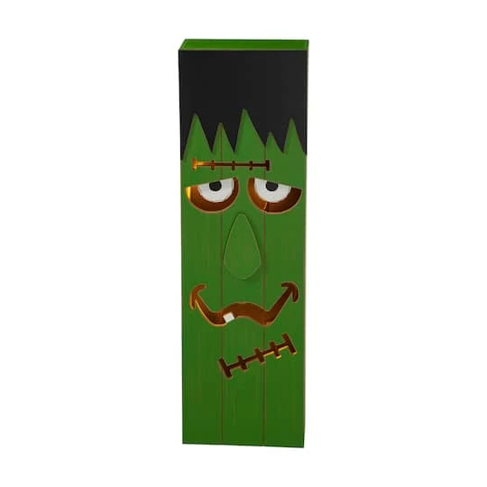 Be afraid. Be very afraid of this funny Frankenstein face ready to spook at your porch. Perfect for any entryway and looks great in the dark. This box shaped Frankenstein is the perfect accent to any Halloween decoration.