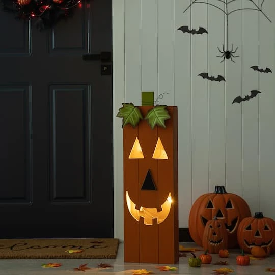 The pumpkin lighted wooden box will be a great addition to your Halloween décor. Protect your home this Halloween season with this 30″ light up pumpkin. Perfect for any entryway.