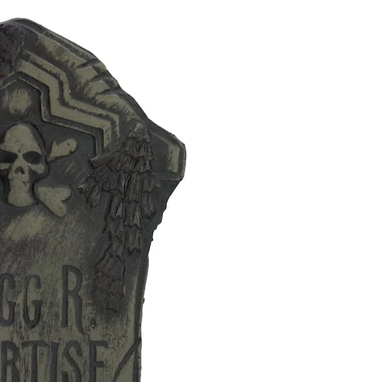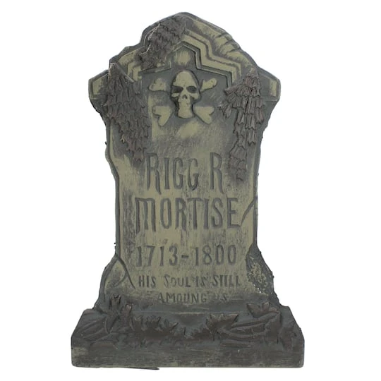 Transform your own yard into a spooktacular graveyard with this frightful tombstone. Tombstone belongs to a long lost soul known as Rigg R Mortise who lived from 1713-1800 and reads that his soul is still among us. Accent this tombstone with bones or light it up with a spotlight for a hauntingly fun touch to your haunted house or Halloween décor.